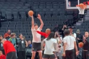 - 加油!杨瀚森赛前热身时练习近筐终结和中投