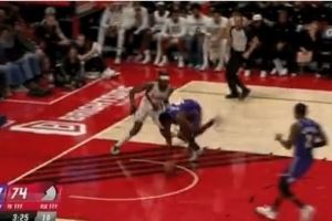 乃父之风!布朗尼灵巧一点助攻范德彪暴扣+突破分球海斯跟进暴扣