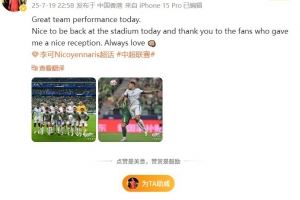 李可写道:今天球队表现很棒,很高兴今天重回工体,感谢球迷们对我的热情欢迎,我一直都很爱这里。