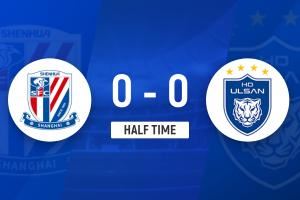 半场战罢,申花暂0-0蔚山HD。