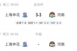 体育资讯07月23日讯 今日足协杯1/4决赛,申花点球大战10-11惨遭河南淘汰,本周日双方将在中超第18轮再次相遇。